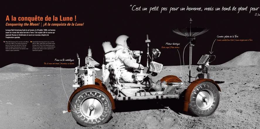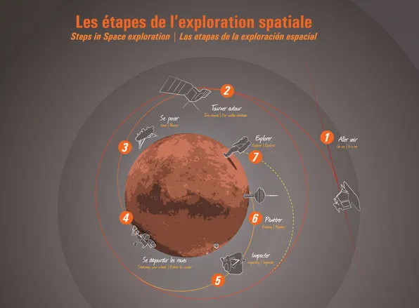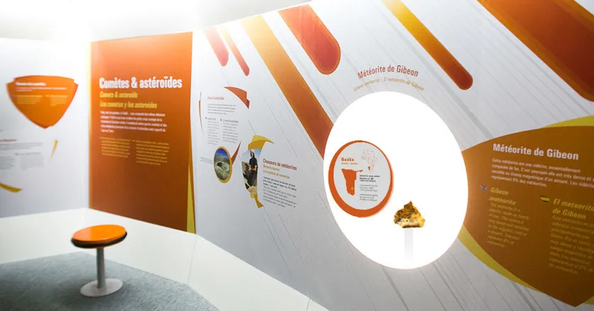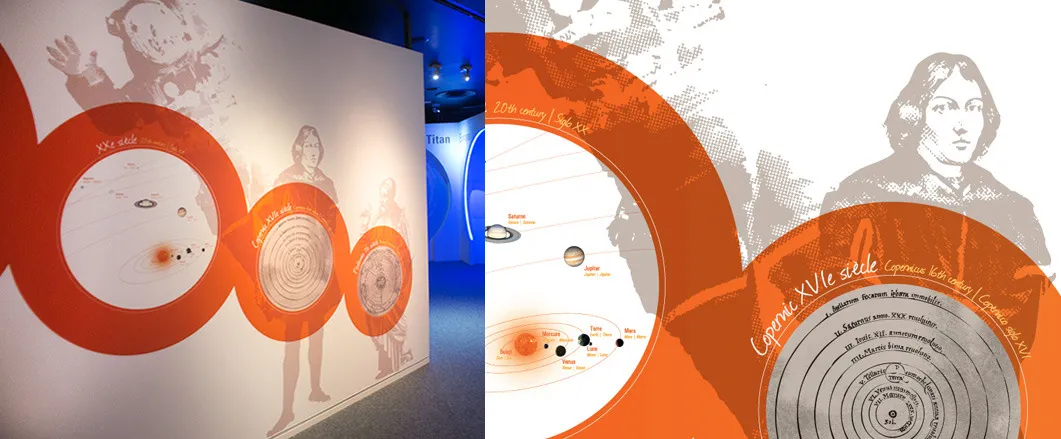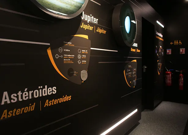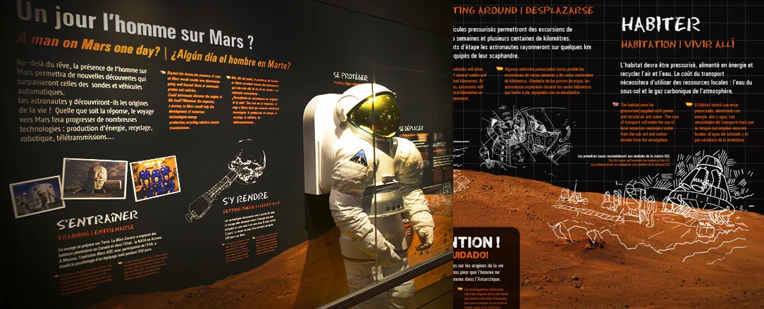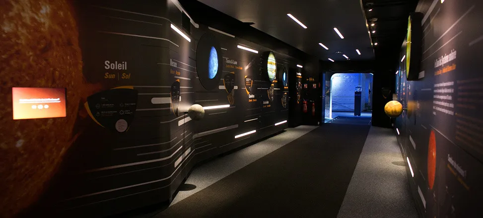 Design graphique des expositions permanentes de la Cité de l'Espace, Parc de l'aventure spatiale à Toulouse. Sur plus de 450 m2, le Quai du système solaire, fait voyager le visiteur au travers de notre système solaire et au delà ! Il présente en particulier les missions Lunaires et Martiennes ainsi que la vie à bord de l'ISS.