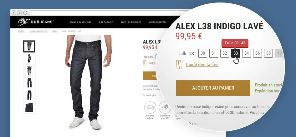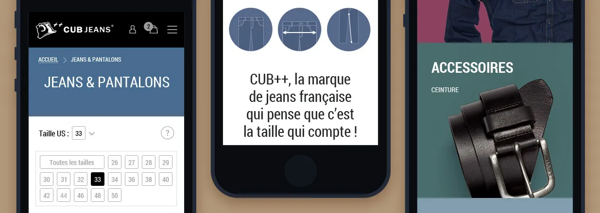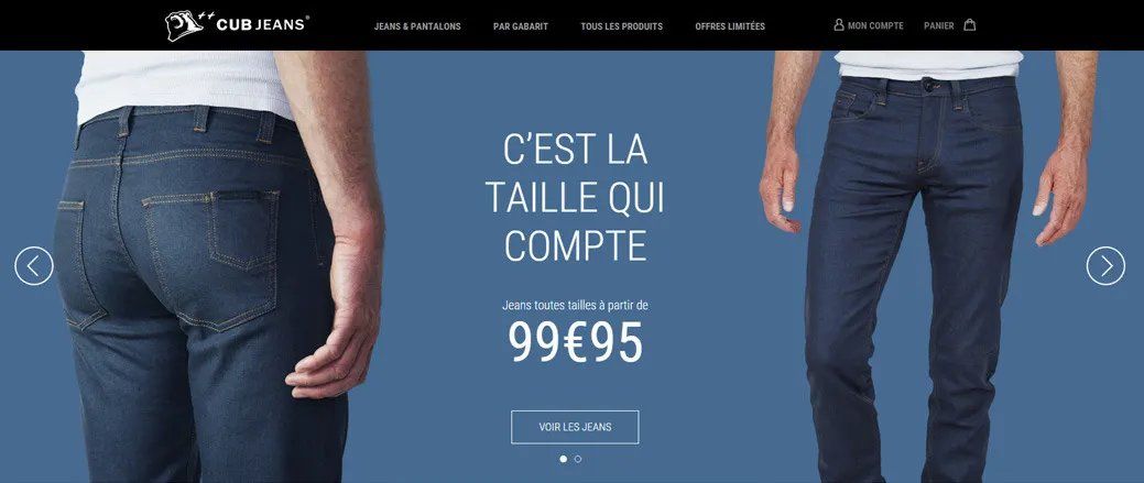 Site e-commerce CUBJeans. CUBjeans est une marque française de jeans Premium. Une des particularités de la marque est de proposer des longueurs et des tailles adaptées aux hommes grands et hommes forts. Cubedesigners a intégralement conçu et réalisé le site, sur la base d'un catalogue Magento.