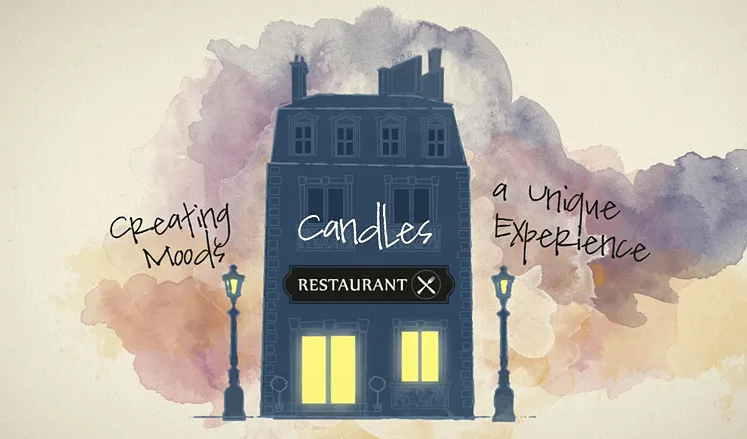 Réalisé pour l'agence JustW. Duni est une société spécialisées dans la création de bougies et accessoires, principalement destinés aux les hôtels et aux restaurants. L'objectif de ce film est de montrer que les bougies créent bien sûr de superbes ambiances, mais que leur utilisation constitue un réel atout commercial pour les professionnels. Cubedesigners est à l'origine du concept, du storyboarding, du design, et de la réalisation du film.