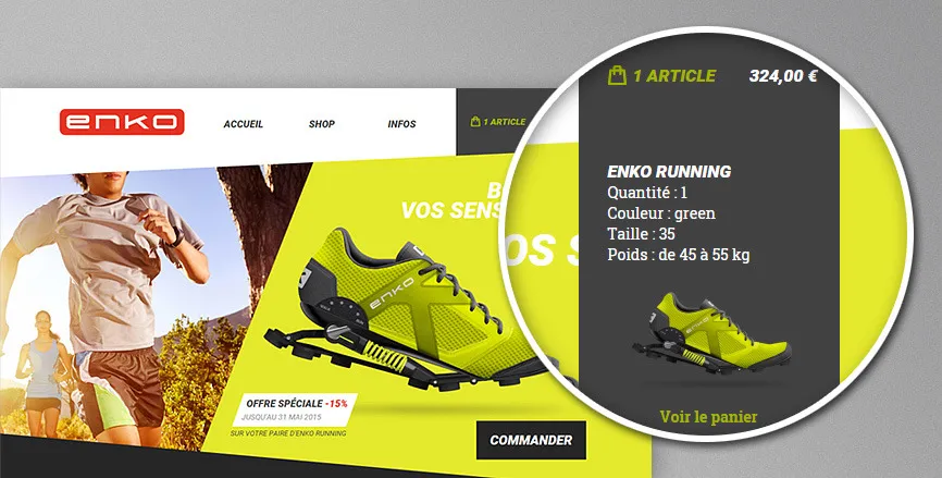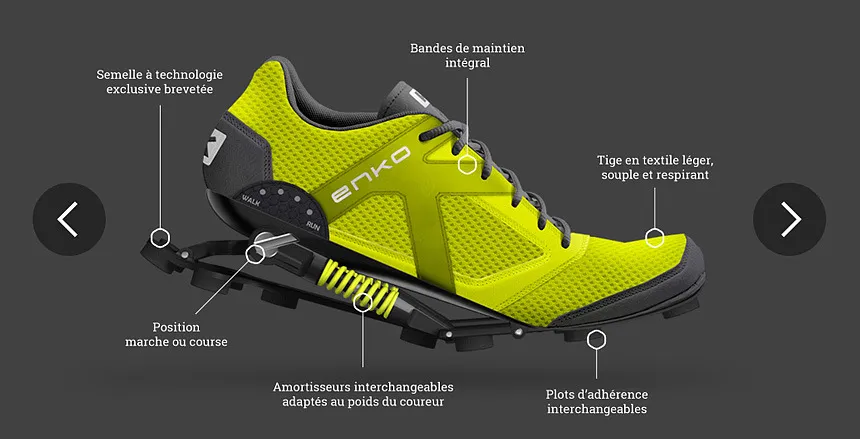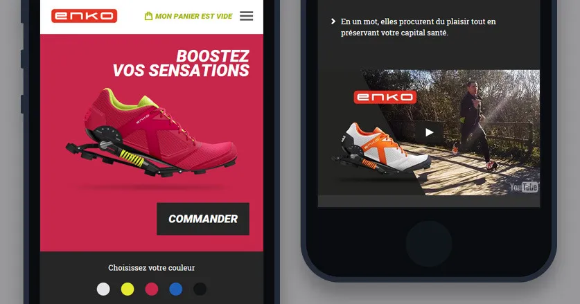 Après avoir conçu la charte graphique complète de la marque, nous avons conçu et réalisé ce site internet e-commerce. Le site étant quasi mono produit, une boutique classique prévue pour un catalogue complet aurait été inadaptée tant d'un point de vue ergonomique que fonctionnel. Le site a donc été conçu entièrement sur mesure autours de la chaussure pour lui donner un maximum de visibilité et offrir une expérience utilisateur réussie. La singularité du produit (chaussure innovante, fabrication à la demande, choix précis des tailles/poids) fait que l'on a apporté un soin particulier à la présentation de la chaussure et mis en place des aides au choix, afin d'accompagner l'acheteur pour concrétiser la vente et limiter les retours (en évitant les problèmes d'erreur de pointure, en mettant en place un suivi de fabrication clair et précis pour le client). Le site est disponible en version desktop, tablette et mobile, avec une intégration HTML5 entièrement administrable.