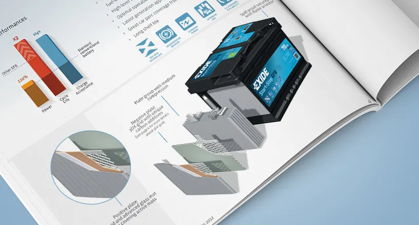 Présent dans plus de 80 pays, et riche de plus de 120 ans d'existence, Exide Technologies produit des batteries pour les domaines automobiles et industriels. Après avoir redéfini l'univers graphique de la marque, nous le déclinons aujourd'hui sur de nombreux supports : packagings, brochures, campagnes publicitaires, films...