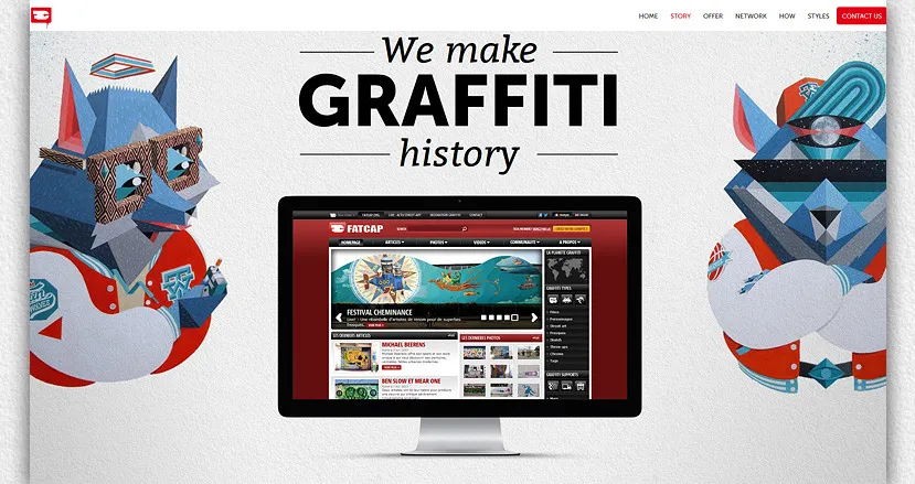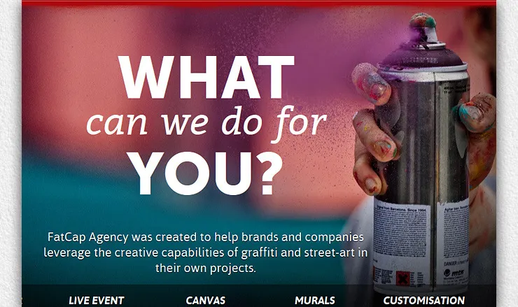 Depuis 2010, Fatcap met en relation des artistes avec des particuliers et des entreprises, facilitant ainsi le développement de la culture du graffiti hors de ses frontières originelles. Cubedesigners a réalisé intégralement ce "one-page-site", webdesign et développement HTML5.