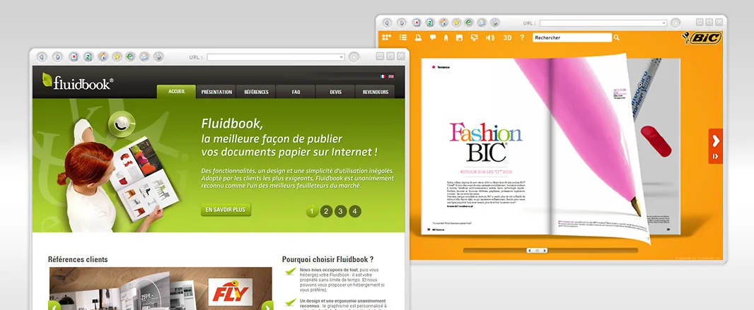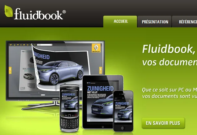 Fluidbook est un produit Cubedesigners. Réalisation intégrale du site web et du produit.