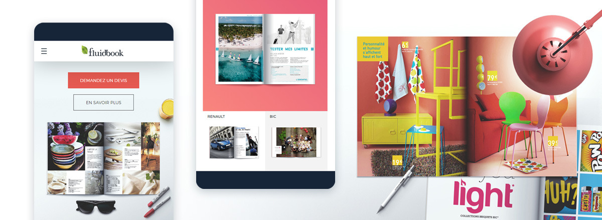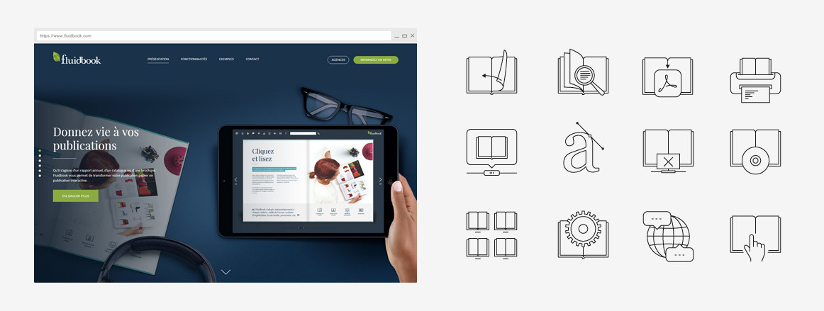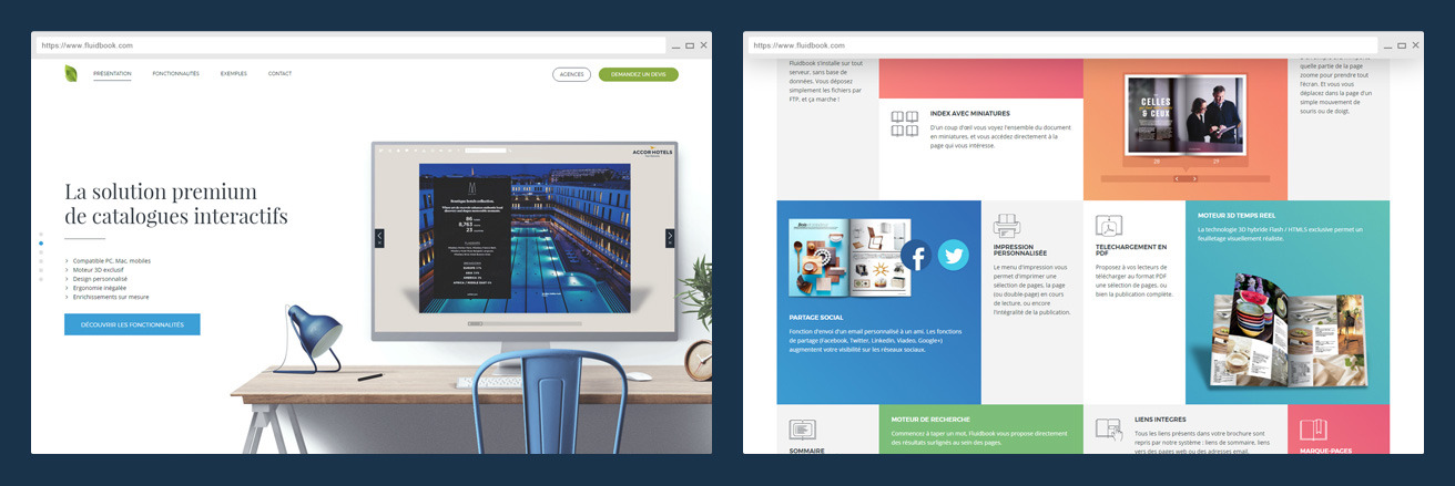 Fluidbook permet de transformer une publication papier en publication interactive. Fluidbook s’est imposé au fil des années comme la référence Premium dans le domaine des catalogues interactifs. Cubedesigners a réalisé intégralement ce site : zonings et ergonomie (UX design), rédaction des contenus, webdesign et développement responsive.