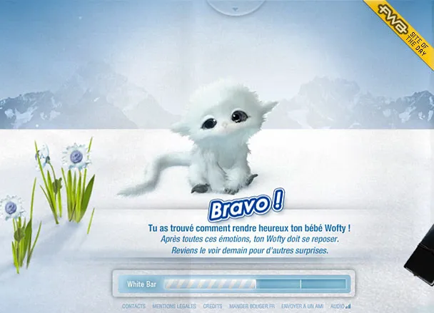 Découvrez le Wofty, un animal tout en blancheur...carressez-le, jouez avec lui, trouvez ce qui lui plait...Et au fil du jeu, téléchargez les goodies, les widgets, les vidéos et faites le grandir ! Récompensé par Favorite Website Awards !