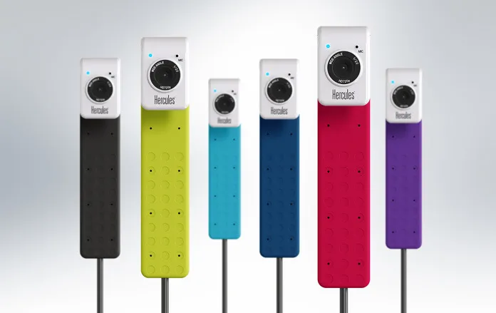 Design d'une webcam mini au pied original : flexible, en silicone tendre, il intègre une armature métallique qui lui permet de prendre toutes les positions. La webcam peut ainsi être installée sur un écran bien sûr, et ce quelque soit son épaisseur (ordinateur de bureau ou portable), mais aussi posée sur une table, fixée sur une étagère, coincée entre deux livres, etc. Disponible en 6 couleurs.
