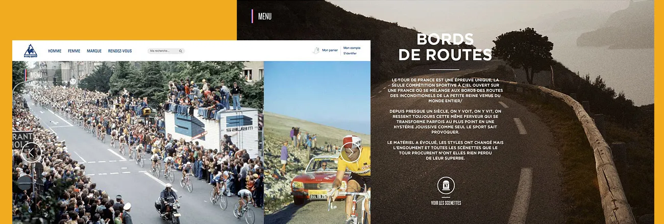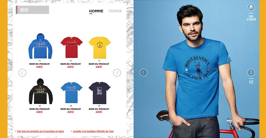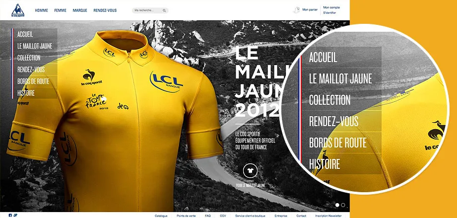 A l'occasion de son retour en tant qu'équipementier du Tour de France, le Coq Sportif a réalisé ce site web qui retrace l'histoire du tour et permet d'acheter le maillot jaune et la collection spécifique de la marque. Pour l'agence Nedd, Cubedesigners a entièrement développé ce site en HTML5.