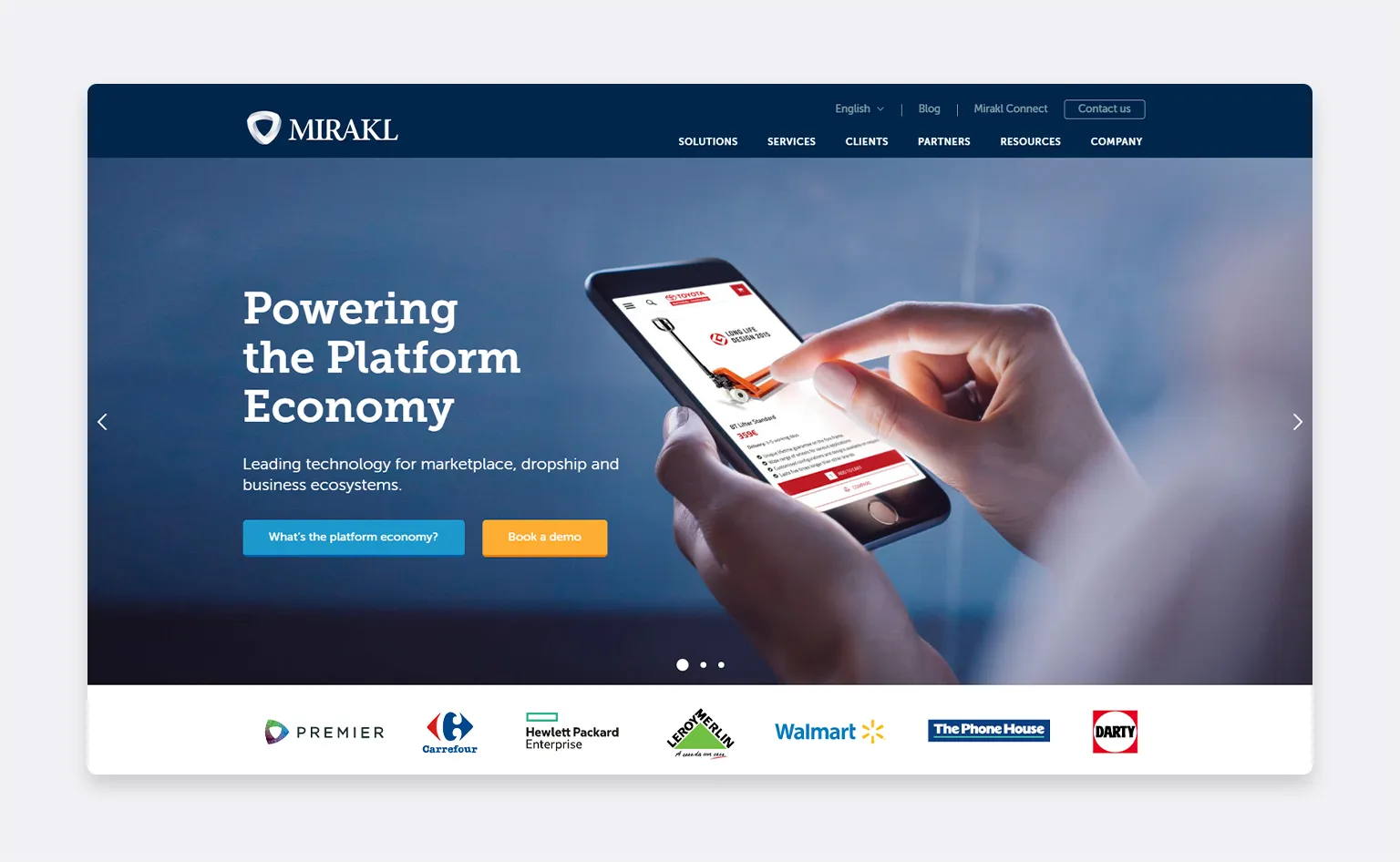 Cubedesigners accompagne Mirakl depuis sa création en 2012 sur tous ses sujets de communication : logo et charte graphique, design et réalisation du site web, design des supports de communication papier, création des chartes événementielles (Mirakl Summit), etc.